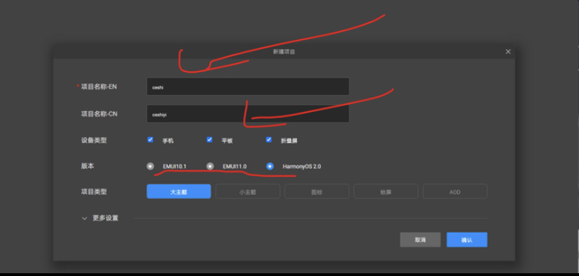填写,版本的话看你做那个的emui还是鸿蒙,项目类型后面会介绍很简单区分