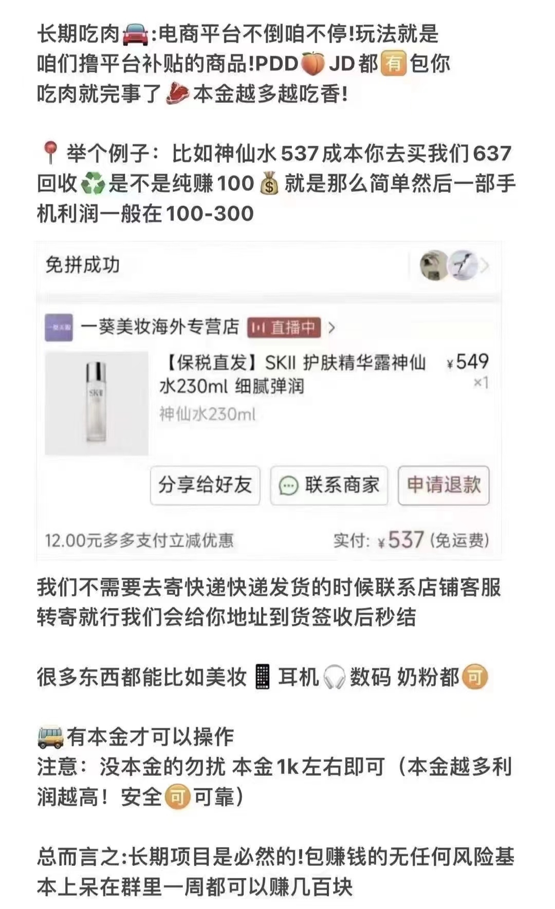 通过信息差,在各大平台下单美妆,酒水,手机等商品,转寄到档口回收,此项目包括如何下单,下单流程,对接档口,同时也包括外面收费的得物鞋子搬砖 只要下单就一定有利润,助理全天在线 商品不用抢 都可以拍到