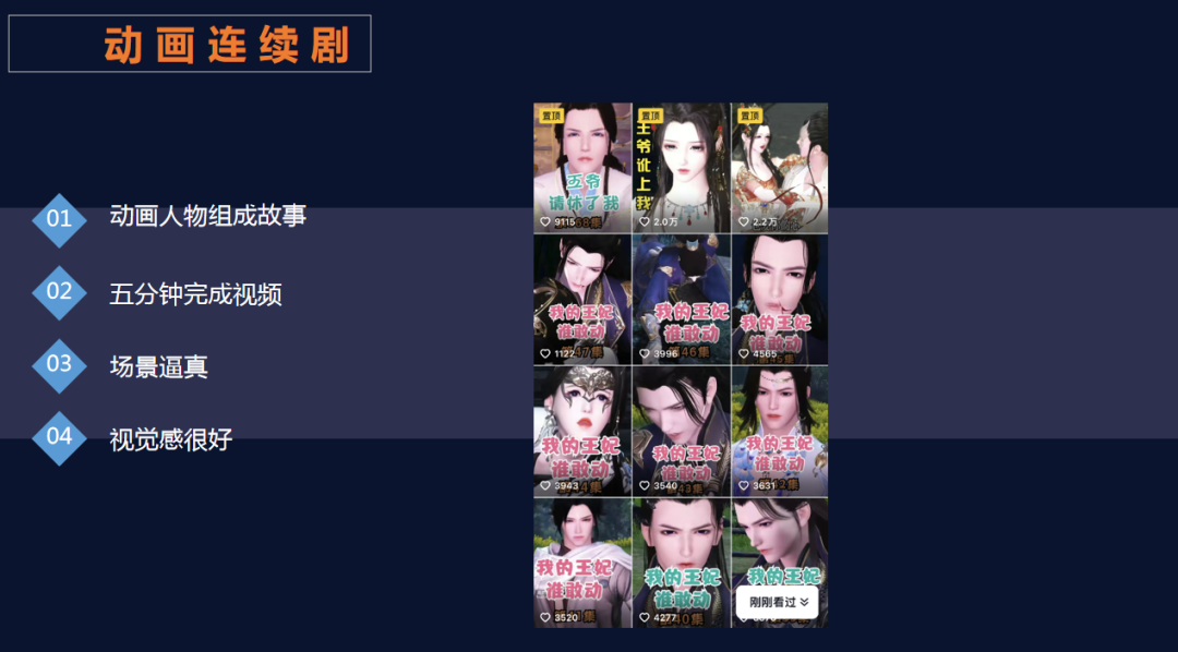 它的底层逻辑呢就是,通过软件制作动画连续剧,让这些动画人物在特定的场景里面去演一些小故事,上传平台再通过各种途径变现。