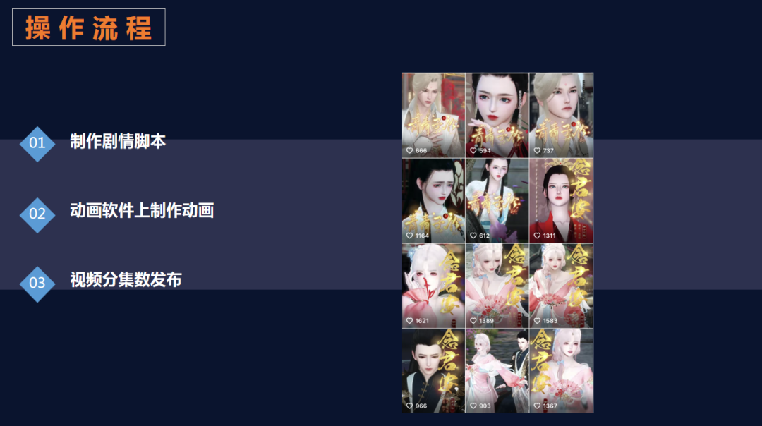 首先我们需要写一个小的剧情文案,可以参考古风小说,宫廷剧之类的,这里要注意一点,不能生搬硬套,你可以结合小说梳理一个自己风格的文案。