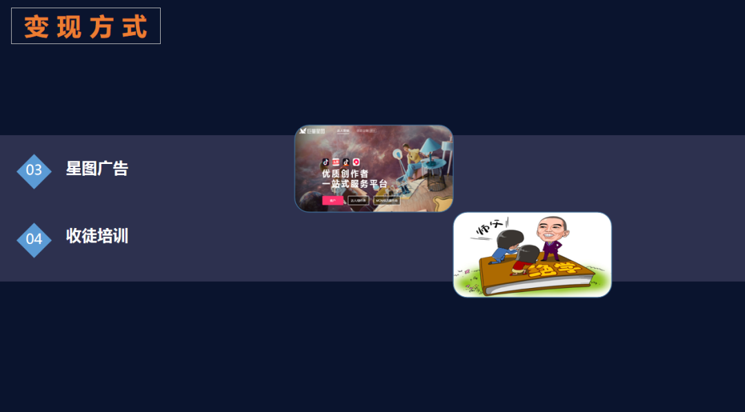 视频做好之后,我们就要考虑如何变现了,它的变现方式呢差不多有四种。