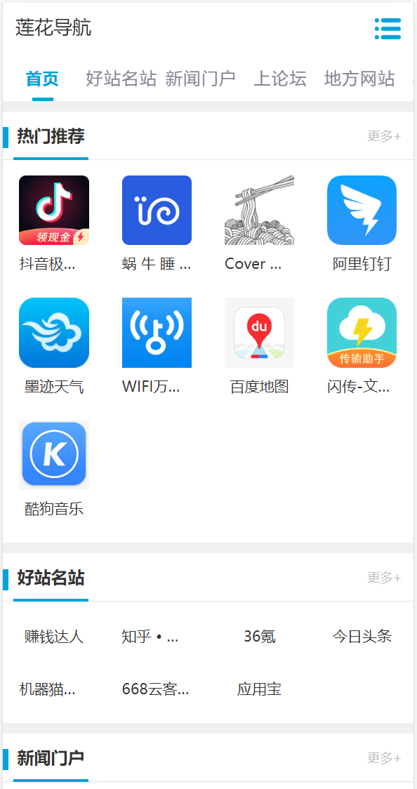 莲花单页导航是一个以PHP+MySQL进行开发的PHP导航网站源码。v2.0 比1.0版本加多个模板(手机版) ,修复了一些不严谨的错误。